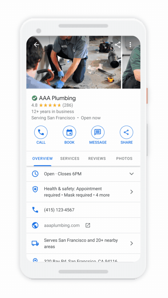 You can manage LSAs either on desktop or through the Local Services Ads mobile app, which is available on both Android and iOS platforms. Prospective customers can easily access your business information, read reviews, view photos, and directly contact you by calling, messaging, or booking an appointment, all within your ad.