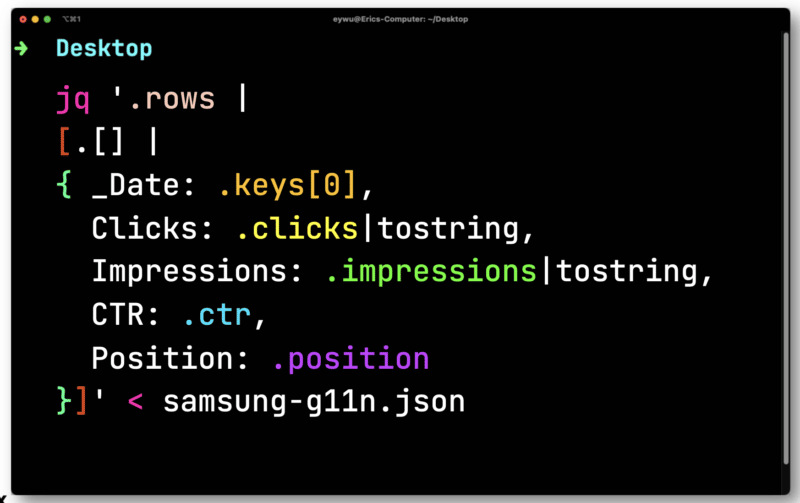JQ will then output the following much-simpler format.
