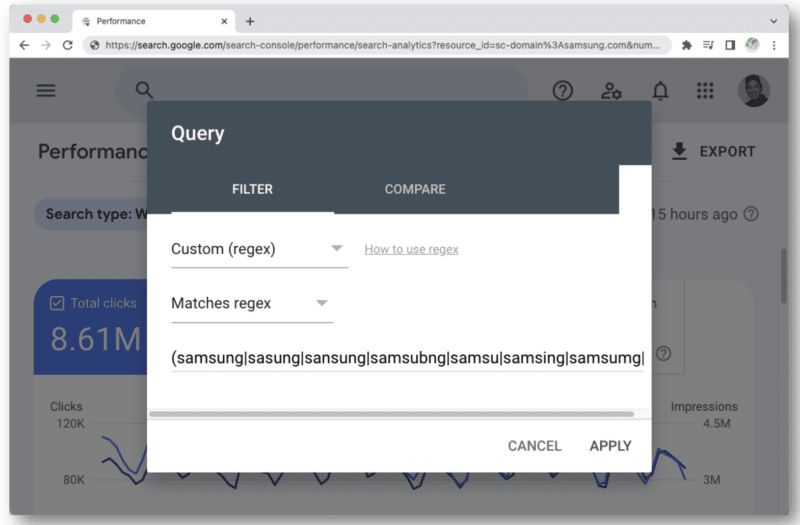 Another instance where you may start hitting the regex character limit in GSC is when you use it for branded queries.