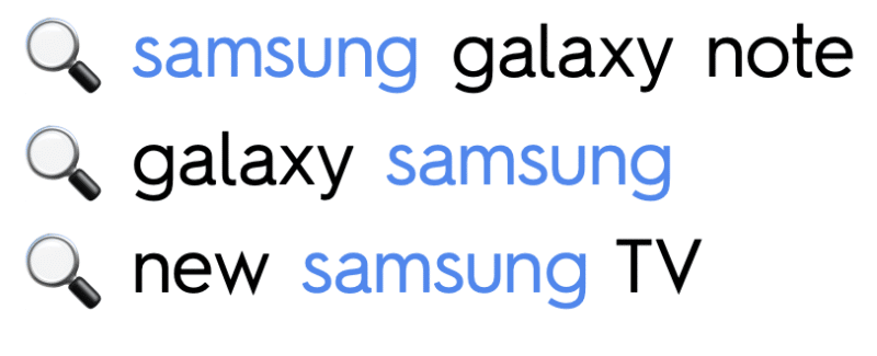 This captures all queries where the brand name “samsung” is either at the start, middle or end.