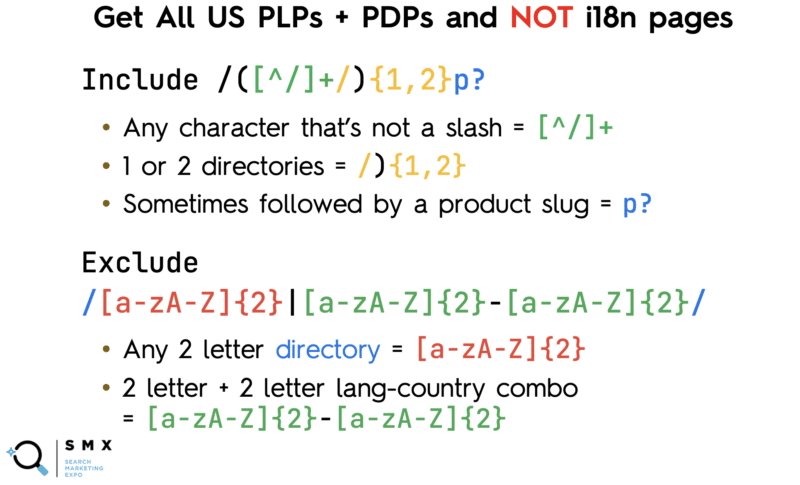 Even using regex syntax was tricky because letters and dashes exist in the product slug, categories and subcategories. Additionally, they needed to filter out the international product URLs to capture only U.S. pages.