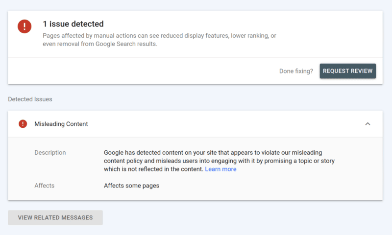 This guide focuses on how you should interpret and respond to these notifications, which Google euphemistically calls “warnings,” many of which are related to Google Search Essentials violations – spammy techniques spotted by the Google Search Quality team deemed egregious enough to trigger sanctions.
