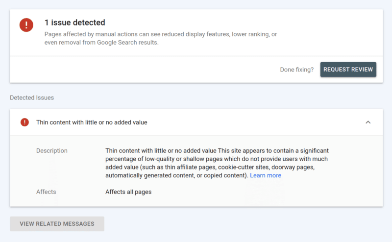 The Google thin content warning is triggered in Google Search Console when a website is found to lack substantially in added value.
