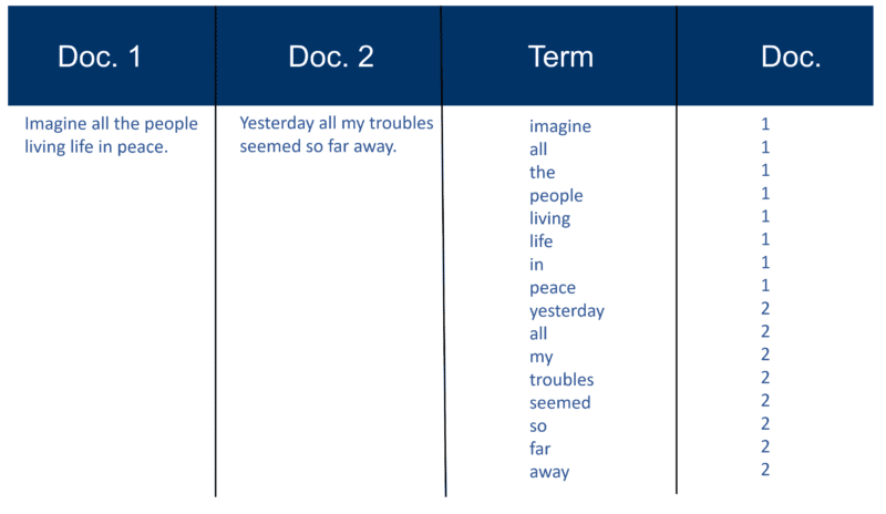 You’ll note my reference to “millions of Docs” from all those years ago. Of course, we’re into billions (even trillions) these days. In my basic explanation of how the index is created, I continued with this: