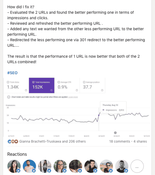 - “SEOs can understand my posts, I make sure it’s easy and simple to understand. They also find it relevant to everyday SEO tasks.”