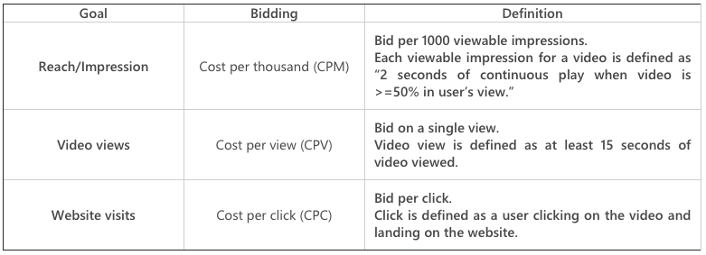 For video ads, there are now three different bidding options.