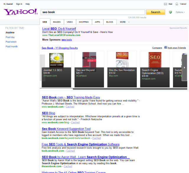 Can anyone explain how Google’s speed bias is aligned with putting plus junk right at the top, even on brand searches? Yahoo! has been pretty aggressive with putting shopping ads in the search results, but their implementation is still a better user experience than what Google did above.